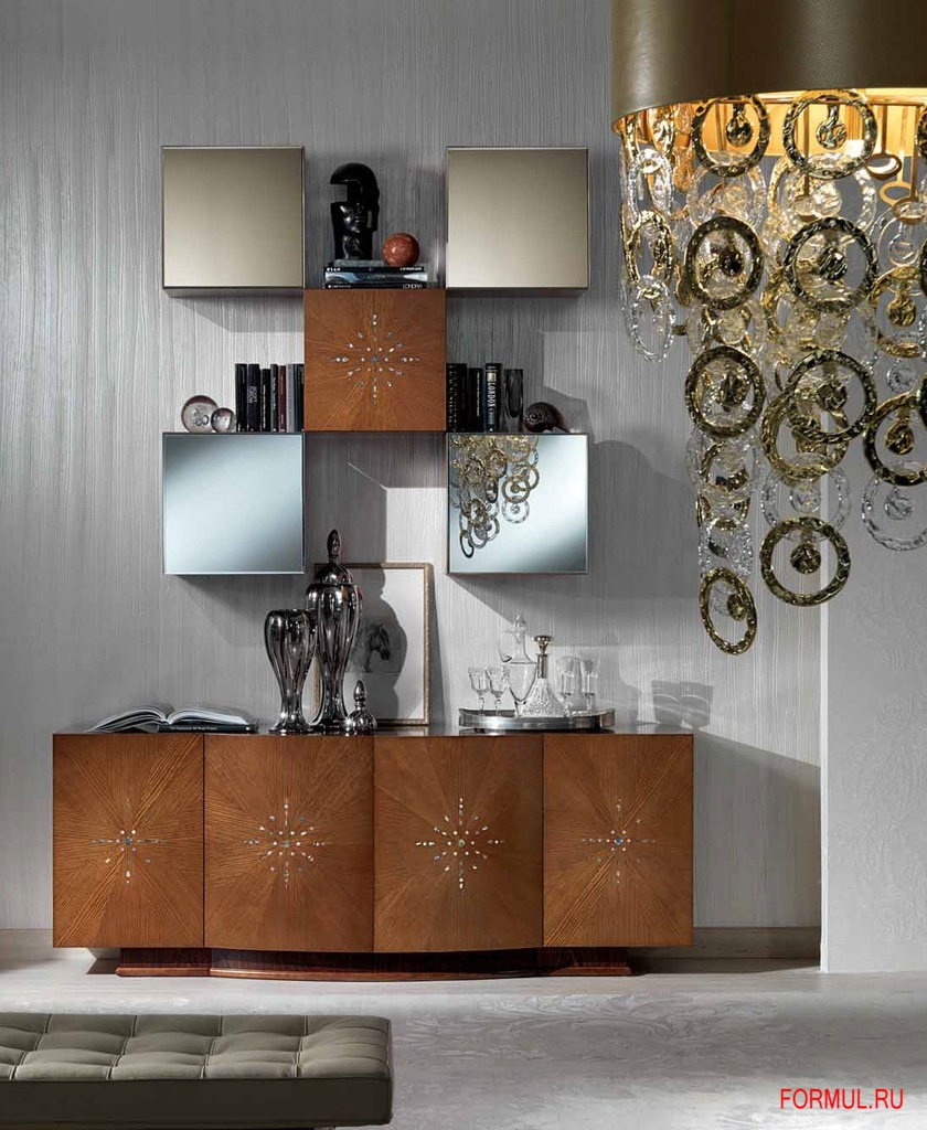 Дверцы модулей облицованы шпоном дуба с инкрустацией из ракушки.