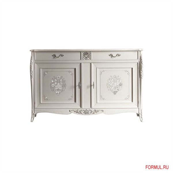 Тумба в классическом стиле. Включает два выдвижных ящика, две распашные дверцы с секциями для хранения. Модель выполнена из массива натуральной древесины. Доступны различные варианты отделки по каталогу фабрики. Изделие декорировано резьбой ручной работы.