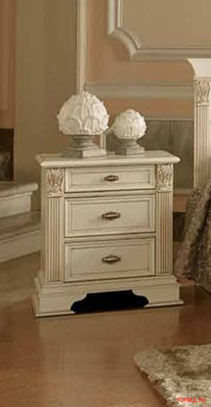 Изысканная тумбочка серии Puccini, выполнена полностью из дерева, в традиционном классическом стиле. (цвет белый)
