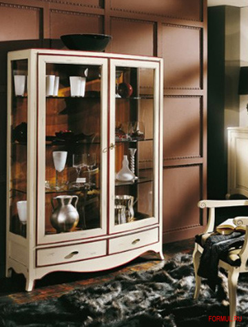 Витрина коллекции Art Deco'. Материал: дерево. 2 стеклянные двери, 3 стеклянные полочки, внизу 2 выдвижных ящика.
