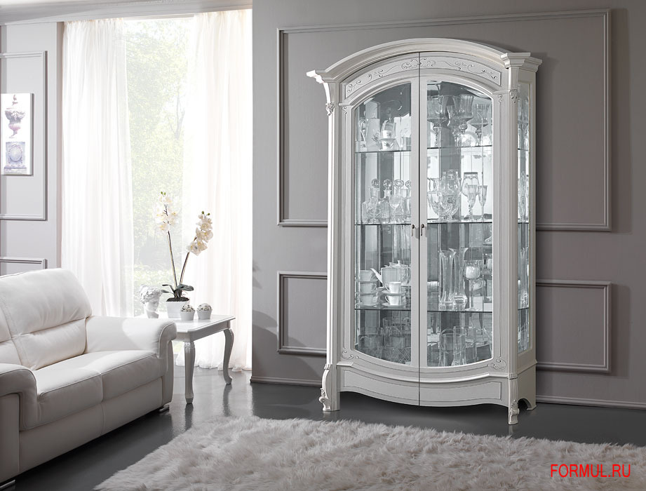 Витрина в классическом стиле, предлагается в отделке белым лаком, 2 дверцы, подсветка