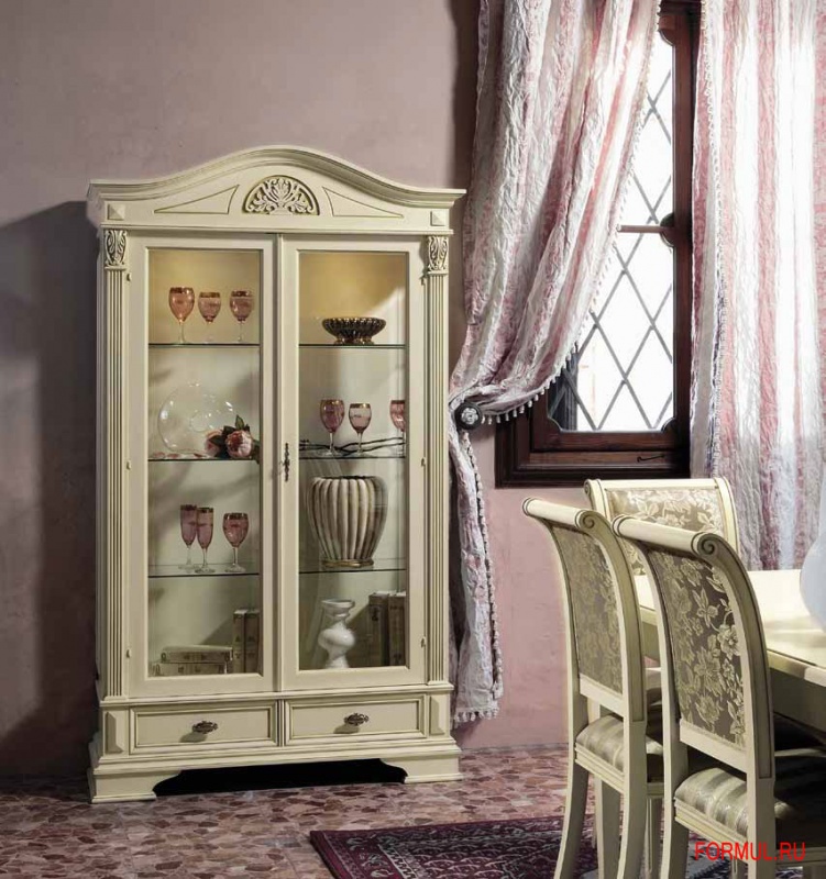 Puccini Bianco Витрина 2х-створчатая с зеркальной стенкой и подсветкой.