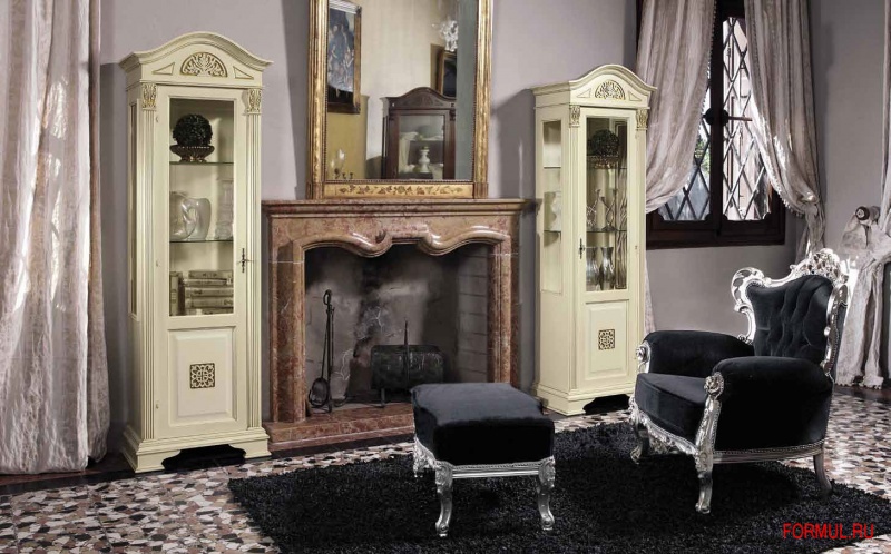Данная гостиная Италия изготовлена натуральных материалов с золотой патиной. Объемность различных элементов, составляющих коллекцию мебель в белом цвете для гостиной Пуччини (Puccini), подчеркивается декоративным орнаментом.