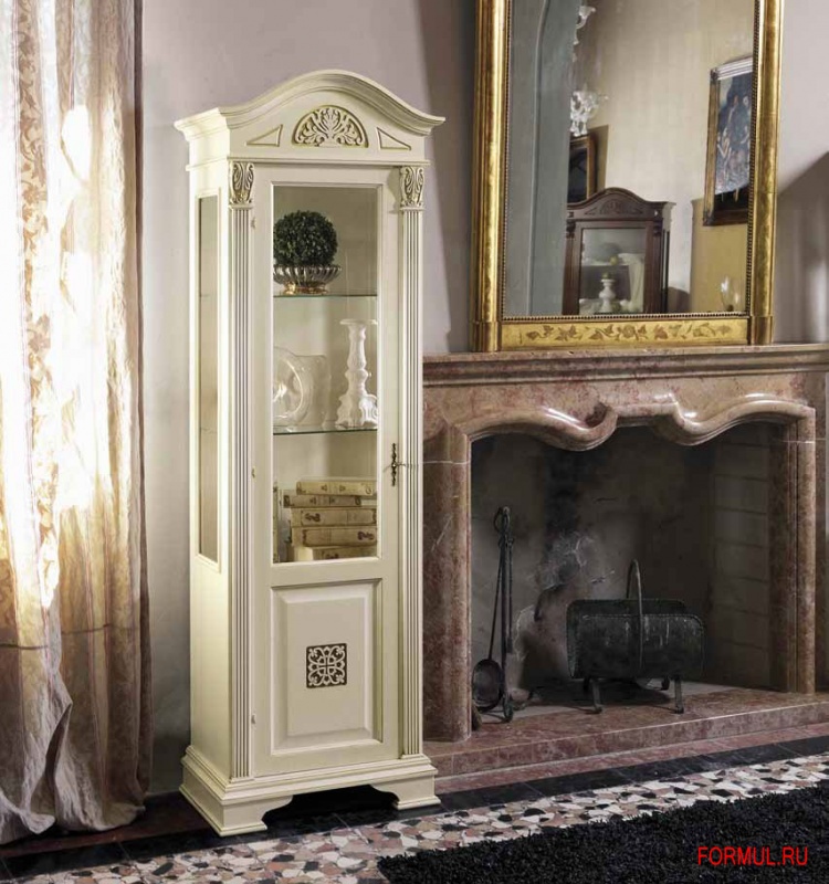 Мебель для гостиной из Италии Puccini bianco oro PL70 (Пуччини белая с золотой патиной PL70): витрины для гостиной Пучини создадут ощущение воздушности и пространства. Оригинальная тумба под аппаратуру Puccini объединила в себе классический стиль с продуманной функциональностью современности и позволяет установить большой телевизор, видео и аудио компоненты спрятав все провода, а ниши вместят коллекцию DVD дисков.