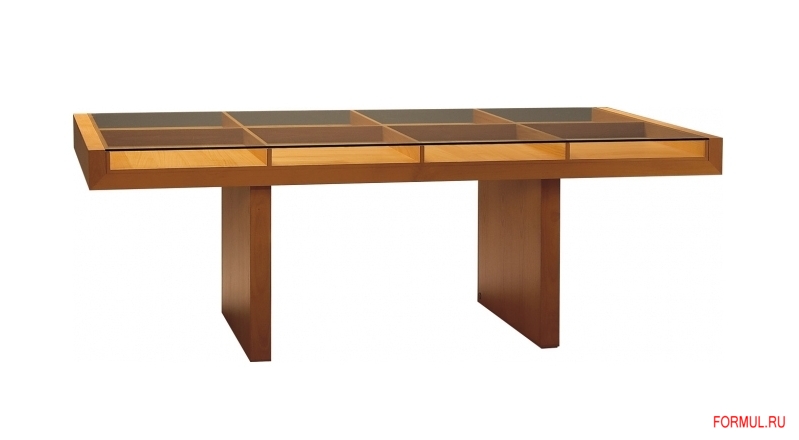 Стол с комбинированным топом из нижней секционной столешницы и стеклянного верха.