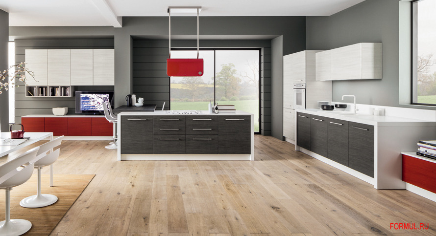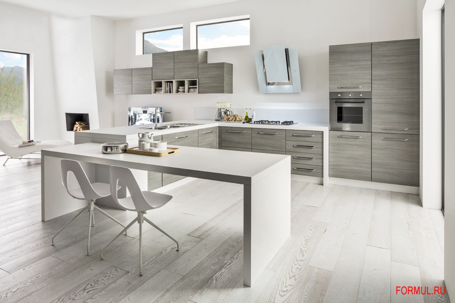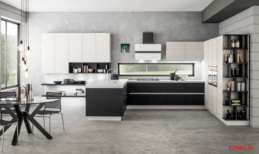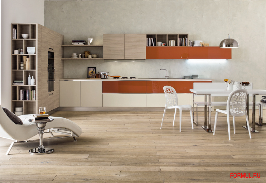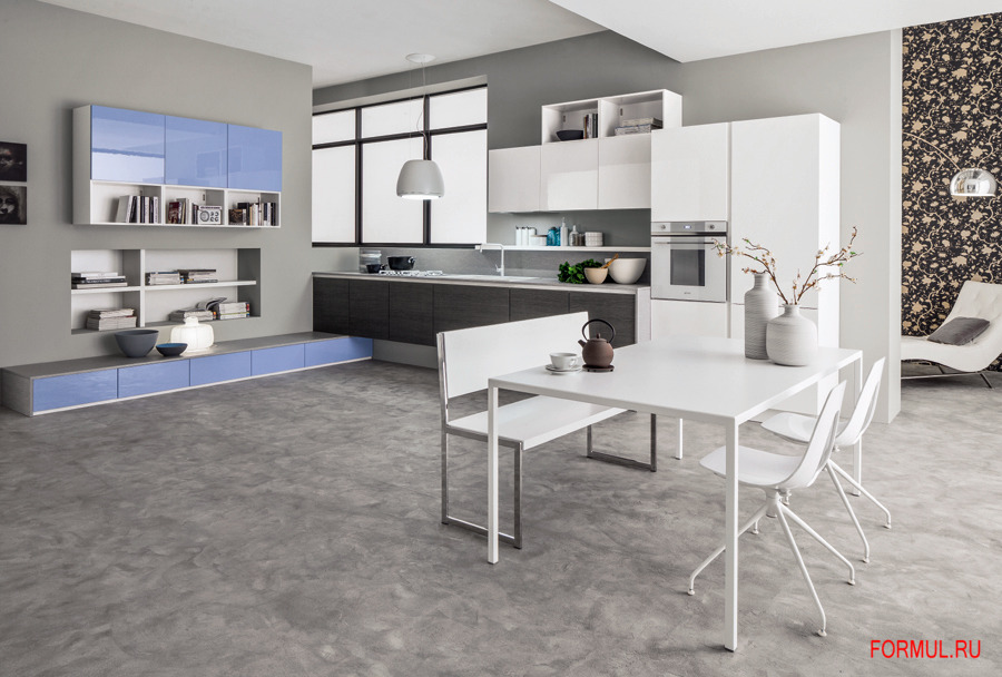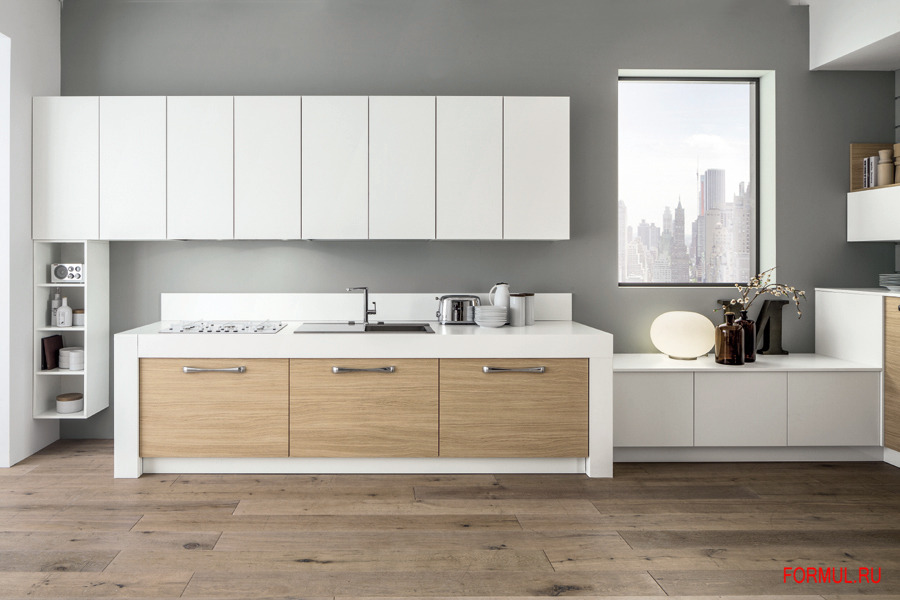 Кухня доступна в отделке maytt laminate, Matrix finish с исполнением в следующих цветах: Bianco, Crema, Champagne, Calce, Creta, Fumo, Lavagna, Natura, Lampone