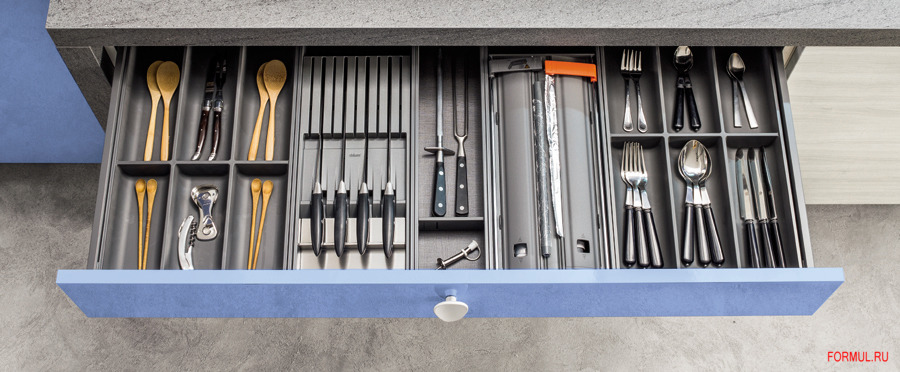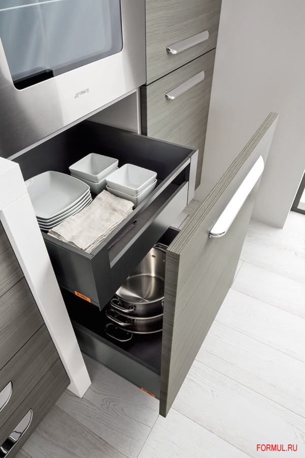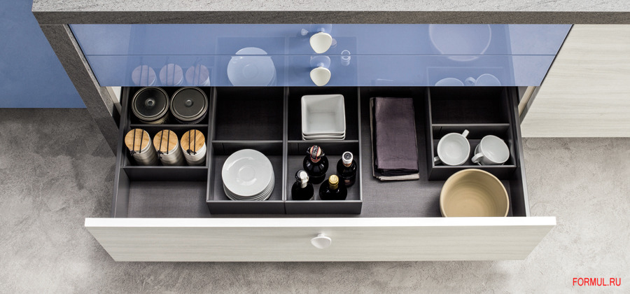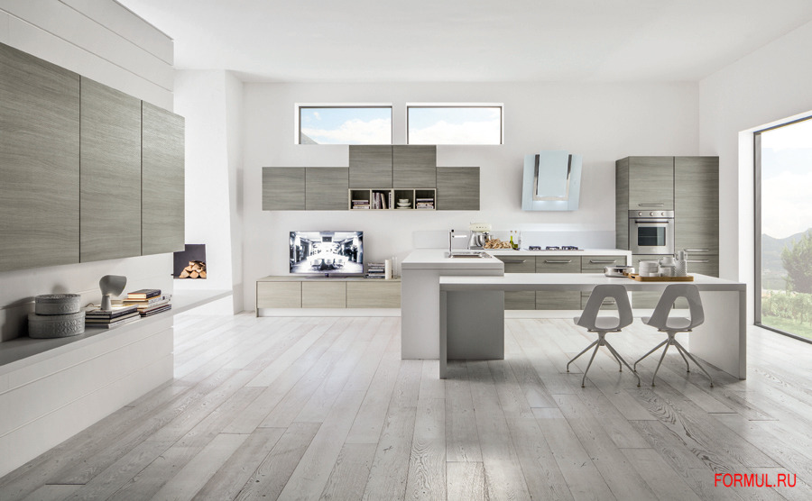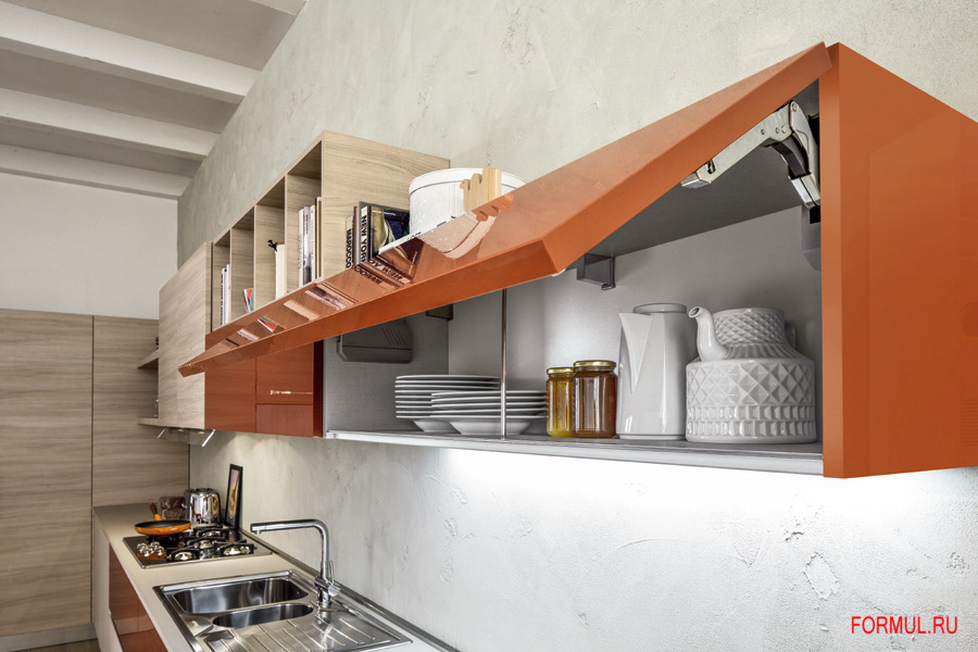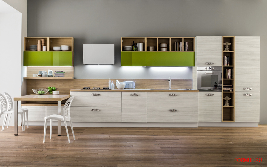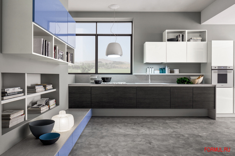 Кухня доступна в отделке maytt laminate, Matrix finish с исполнением в следующих цветах: Bianco, Crema, Champagne, Calce, Creta, Fumo, Lavagna, Natura, Lampone