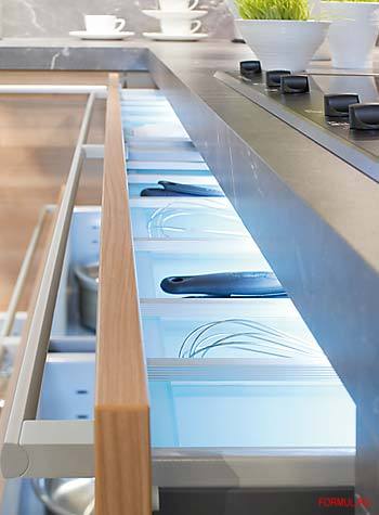 Отчетливый контур и современные линии придают кухне особую привлекательность.