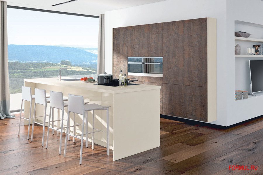 Немецкую кухню Volcano по праву считают универсальной — она идеально подходит как для небольших помещений, так и для просторных квартир-студий, независимо от степени их освещенности.