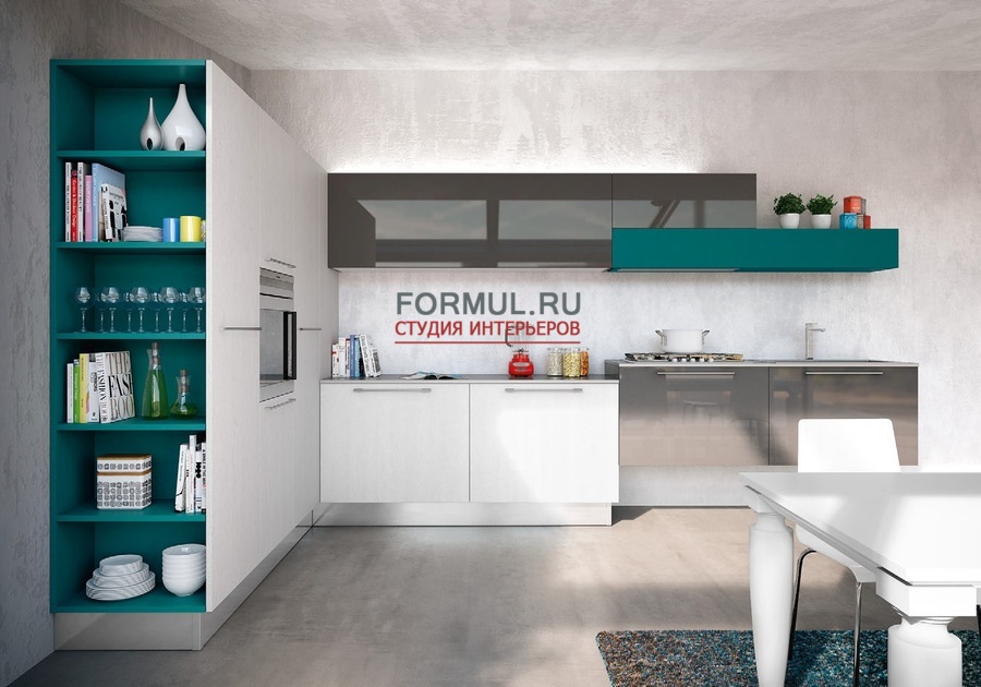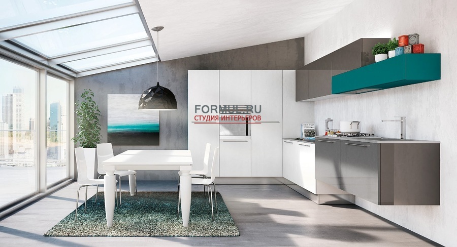 Отделка: Impiallacciato Rovere Bianco+ Laccato RAL 7046 lucido+ Laccato RAL 5021 lucido
