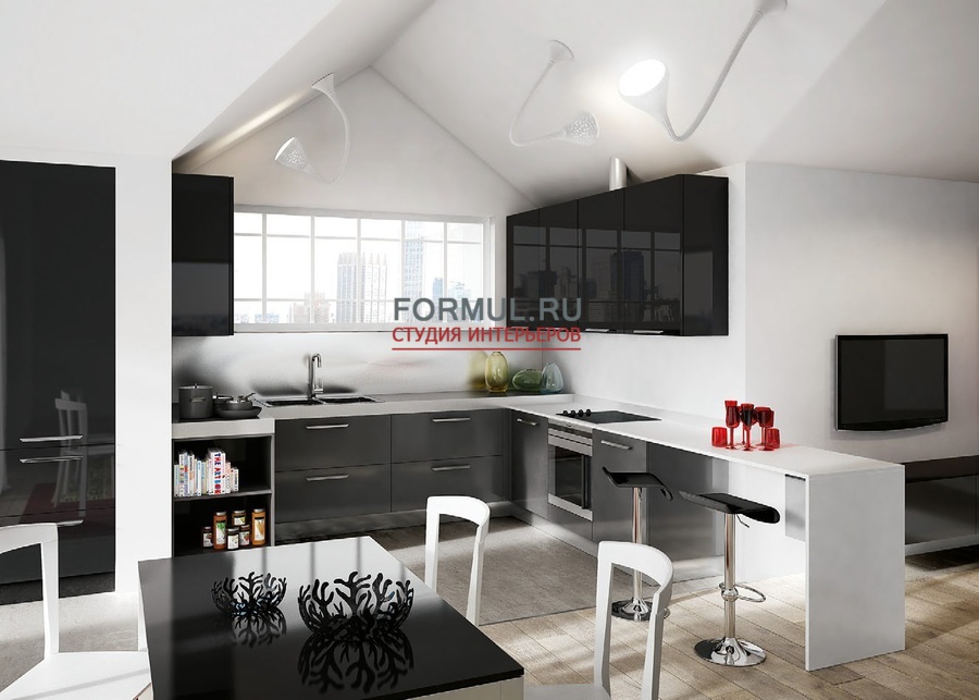 Кухня Berloni Plan Inchiostro - второй элемент коллекции современных кухонь от итальянской фабрики Берлони, выполненный в красивой комбинации белых, металлических и черных оттенков.