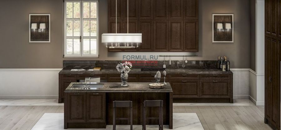 Кухня Berloni Sheraton Frassino Marone - завершающий элемент коллекции кухонной мебели, которая выполнена на стыке современного и классического стиля, имеющий профилированную столешницу из мрамора.