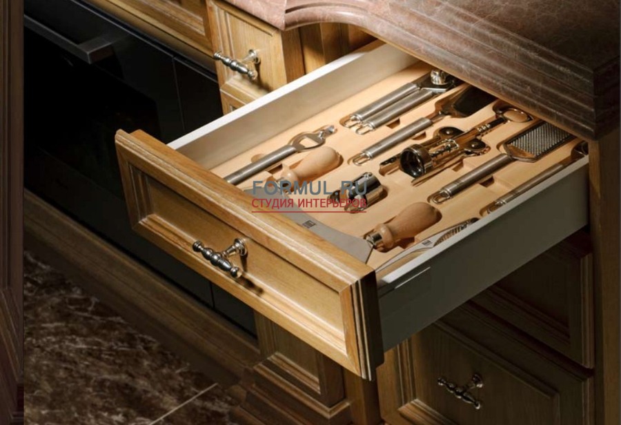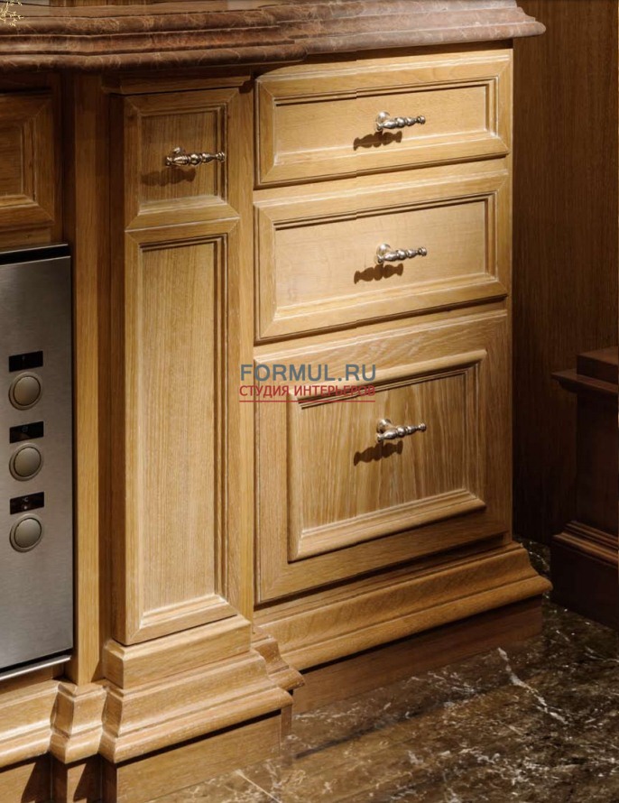 Великолепная элитная кухня Widmann итальянской фабрики Bordignon Camillo является одной из лучших проектов, выполненных в классическом стиле. Главная особенность кухни — мастерски обработанная фактура дерева. Фасады выполнены в тёплых тонах и декорированы резьбой, а солидные колонны украшают капители, изготовленные вручную дизайнерами Bordignon Camillo. Фурнитура благородного серебряного цвета завершает композицию, внося в неё изящество и элегантность. Кухня изготовляется из массива элитной породы дерева, которая дополняется столешницей из натурального камня и декоративными элементами из стекла и высококачественных металлов. Модель Widmann имеет лаковое покрытие, которое сохранит эстетичный внешний вид кухни на длительный срок.