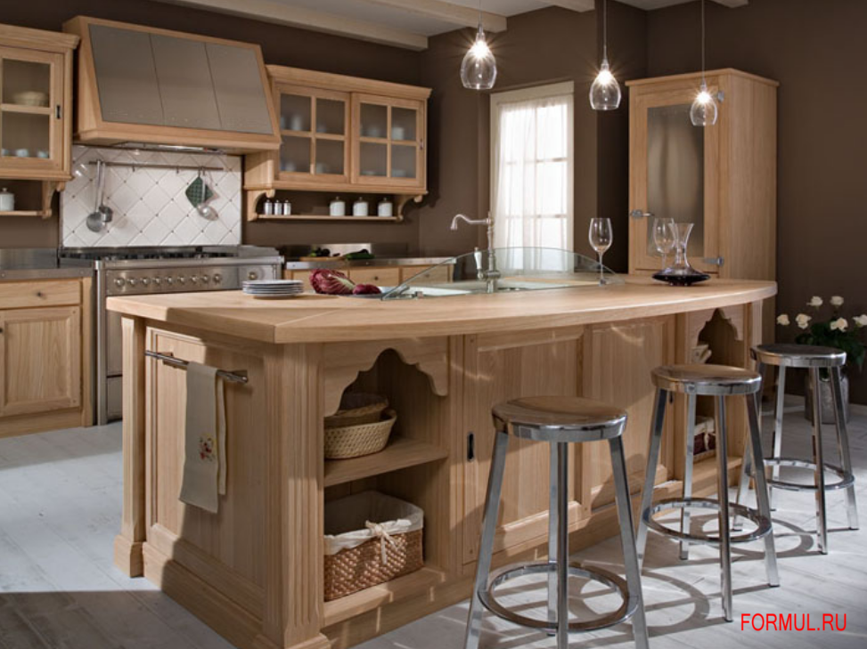 Типичный для современных кухон центральный остров, представляет также и для традиционных помещений смесь функциональности и в тоже время, красоты.