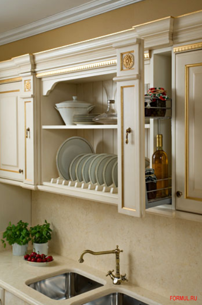 Всё продумано, спроктировано и построено для того, чтобы добиться красоты и функциональности. Открывающиеся колонны, оснащенные ящики, амортизированные системы закрывания, создадут вашу жизг\нь на кухне более комфортной и простой.