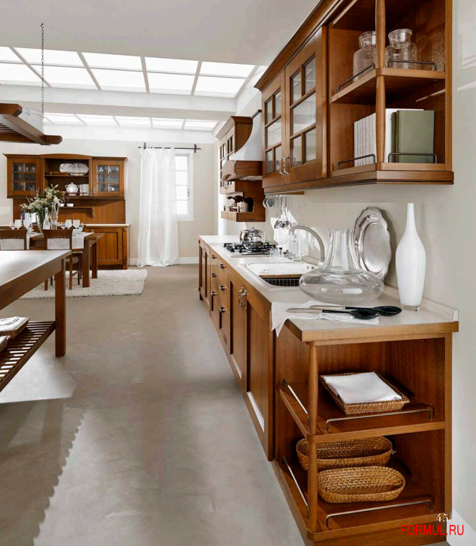 Кухня (гарнитур для кухни) от итальянского производителя. Каркас выполнен из дерева. Полки выполнены из дерева. Боковые стенки выполнены из массива бука. Гарнитур выполнен в современном стиле.