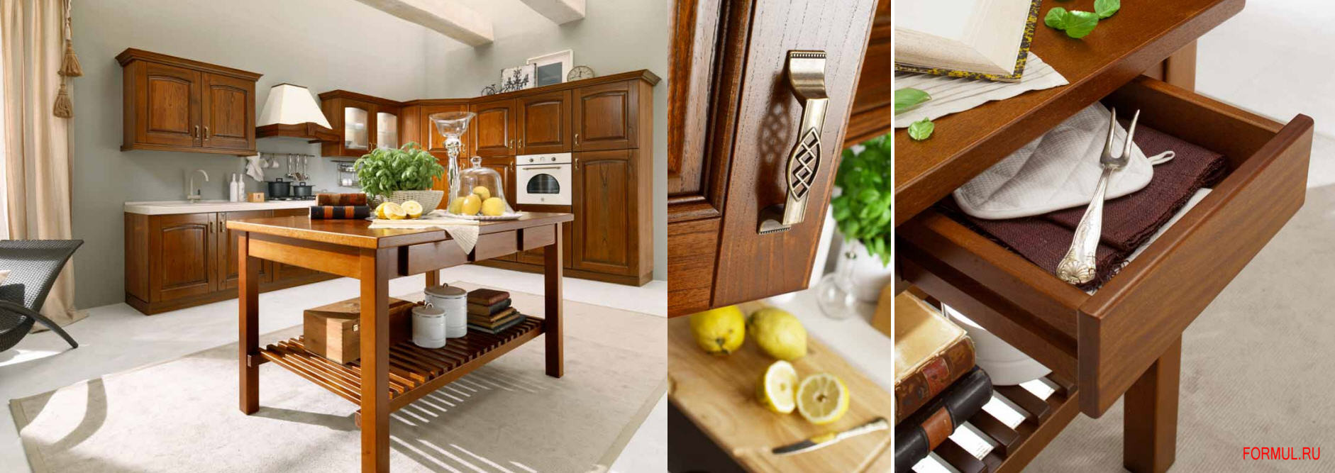 Кухонный гарнитур от итальянского производителя. Основа гарнитура изготовлена из массива дерева. Изящная простота, формы и насыщенность кухни дополнительными функциями поднимают понятие домашнего уюта на качественно новый уровень.