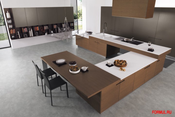 Дизайнерская деревянная кухня Assim от итальянской фабрики по производству мебели Euromobil прекрасно дополняет помещения, выдержанные в ярких светлых и приглушенных темных оттенках. Отличительной запоминающейся чертой оригинального дизайна модели Assim являются высеченные асимметричные ручки: отсутствие выступающей фурнитуры дополнительно подчеркивает сдержанный минимализм и строгий стиль элитной итальянской кухни. Поклонники практичности, которым чужда вычурность и большое количество аксессуаров в интерьере, по достоинству оценят эту привлекательную комфортную модель.
