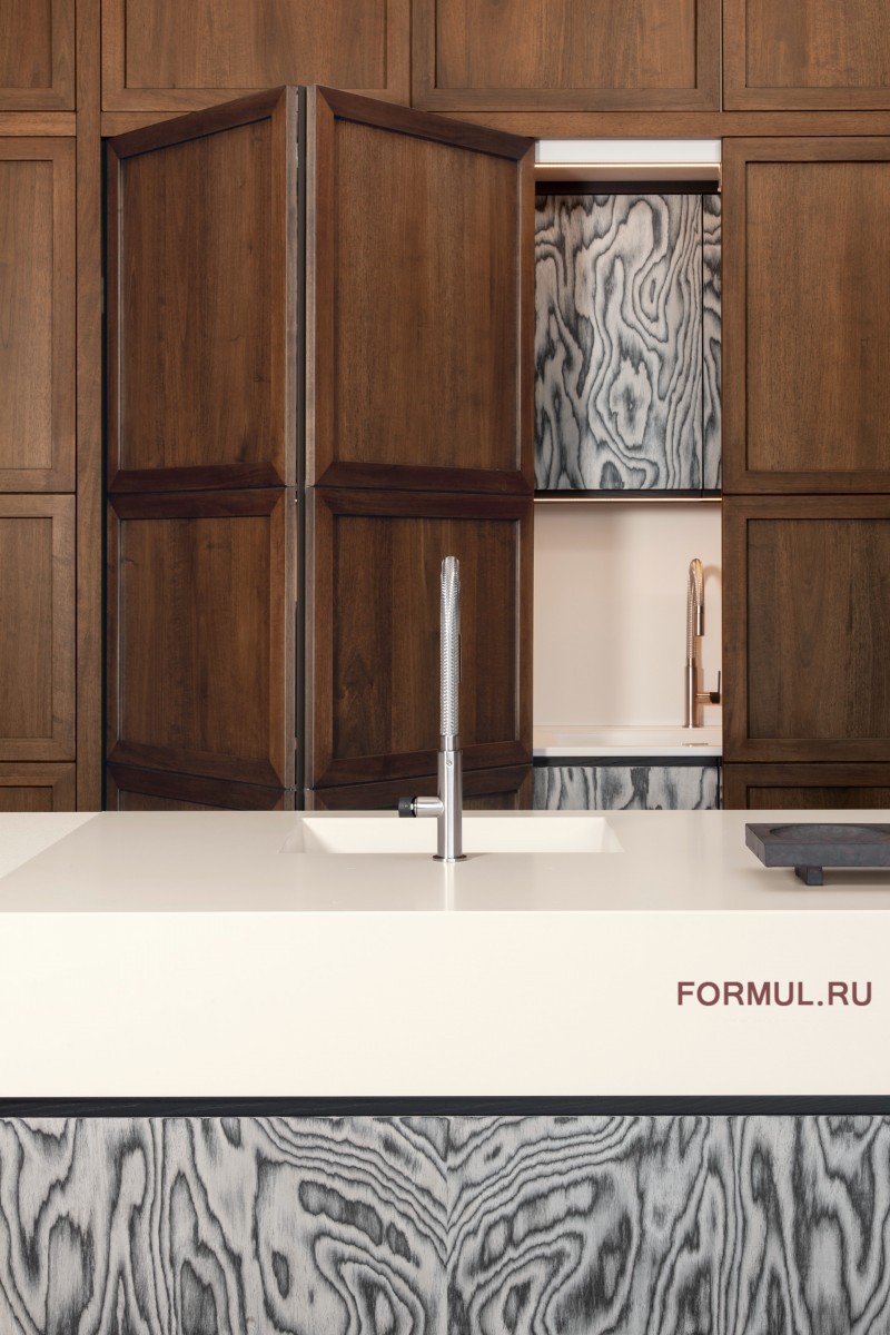 Эта система стеновых панелей буазери, созданная в сотрудничестве с Makethatstudio, подчеркивает всю красоту дерева, сочетая акцентирование внимания на натуральных материалах с функциональностью. Внутренние пространства полностью оборудованы и могут вмещать бытовую технику или отсеки для хранения продуктов.