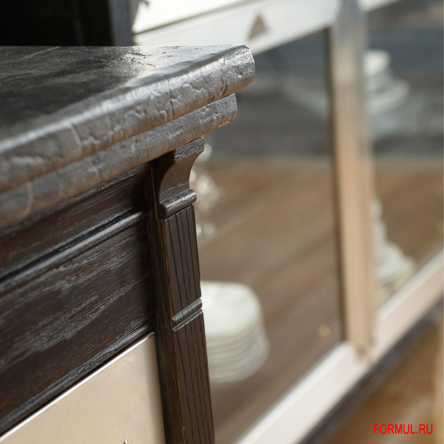 Двери из нержавеющей стали; фасады ящиков из массива (отделка: два оттенка древесины / черный лак).