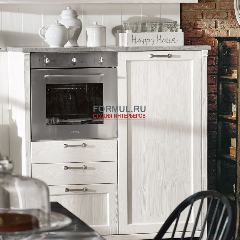 Качество использованных материалов, таких как массив дерева и мрамор, а также самый изысканный дизайн в бежевых, мелово-белых и пыльно-серых тонах, делают кухню Kreola неповторимой, практичной и элегантной. Внимание к деталям, проявившееся в том числе в выборе ручек из состаренного серебра, а также абсолютная свобода композиции в сочетании с электроприборами ведущих марок, превозносят ценность и подчеркивают винтажный стиль этой ремесленной кухни.