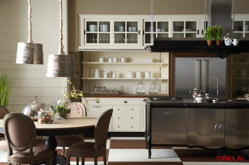 Центральный «остров» со встраиваемой варочной панелью делает стилистическую ремарку в адрес Викторианской эпохи.
