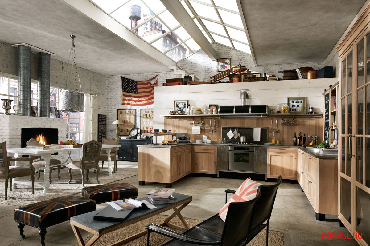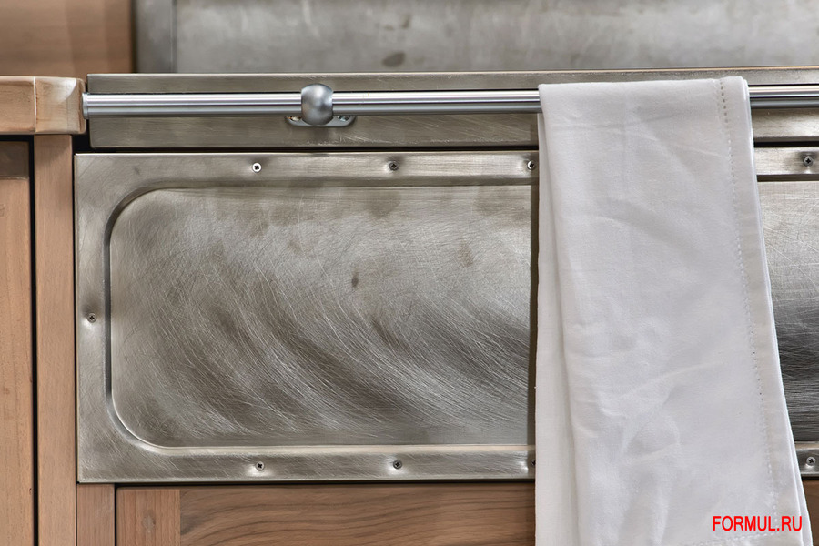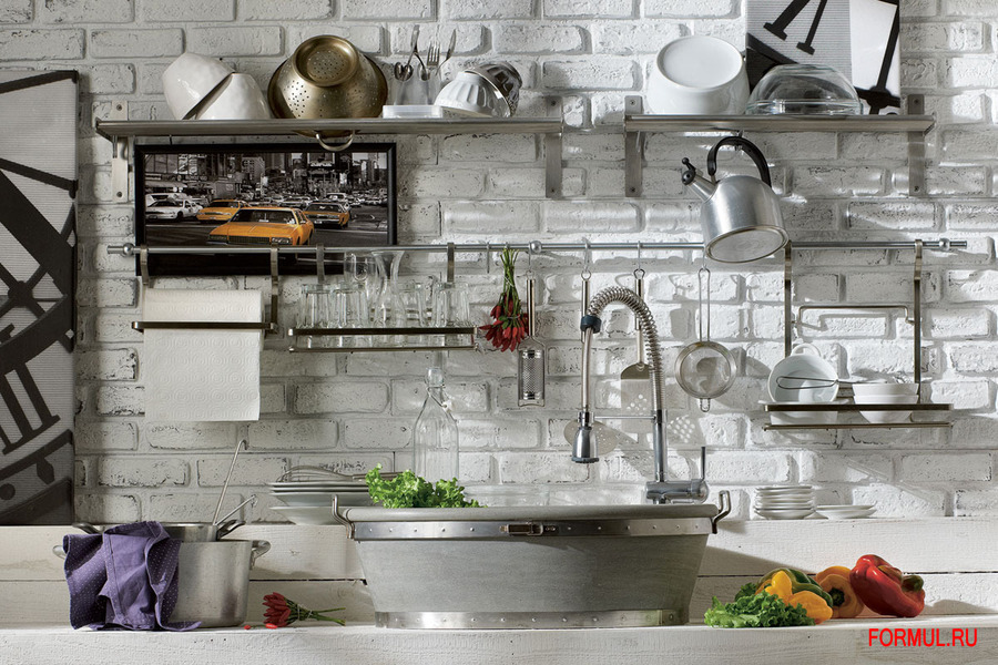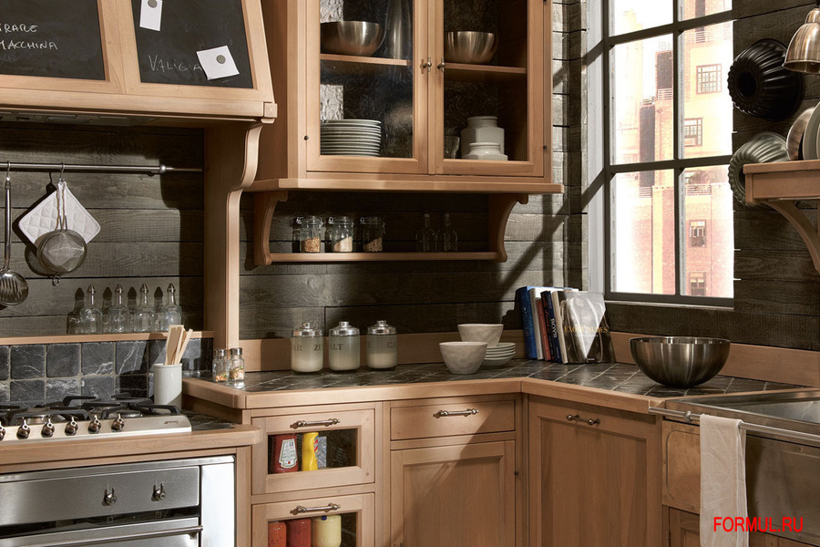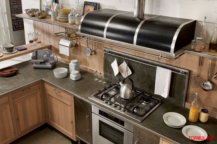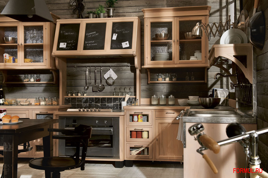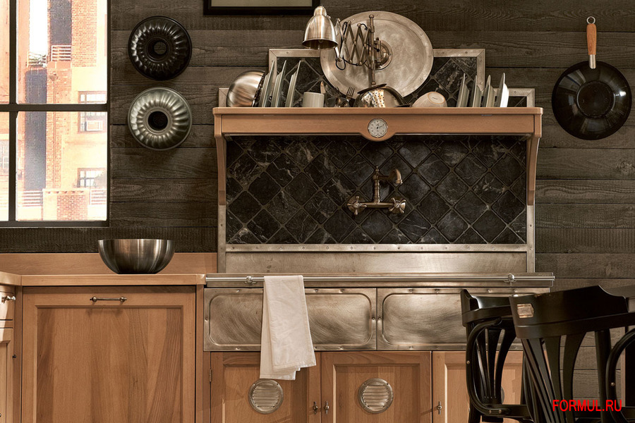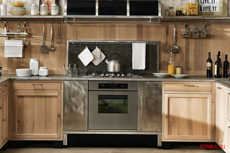 Этот вариант отлично подойдет для тех, кому не угодили «клепаные» панели другой винтажной кухни от Marchi Cucine — 1956.