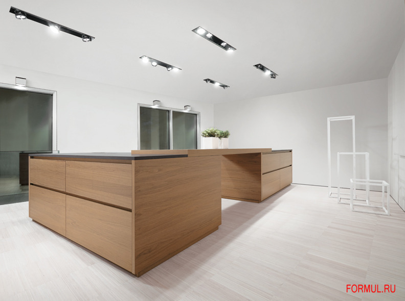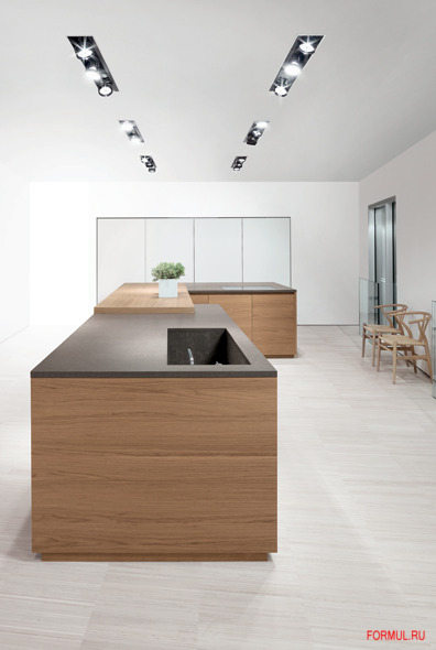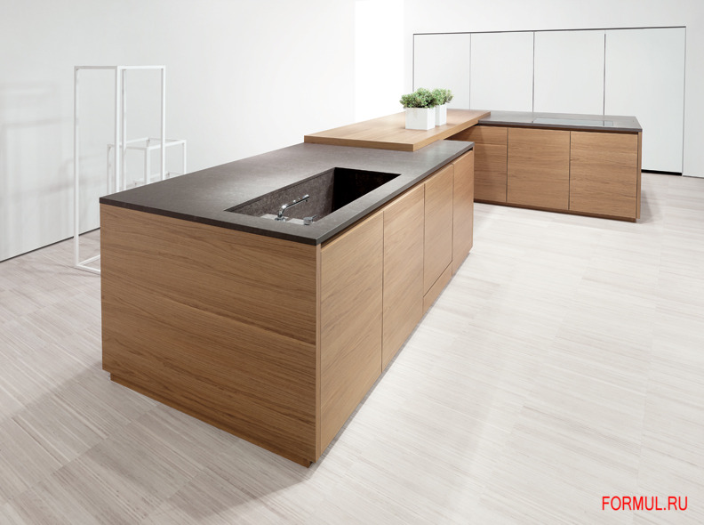 Невероятно эстетичный облик кухни mk cucine достигнут благодаря точным пропорциям, простым архитектурным формам и линиям в сочетании с толстыми фасадами, шпонированными дубом.