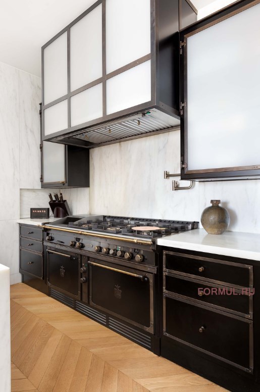 Мы в Нью-Йорке, в чудесных винтажных апартаментах, расположенных в роскошном квартале Верхний Ист-Сайд, с видом на Центральный парк. Нью-йоркский дизайнер Джули Хиллман, в сотрудничестве с фирмой Peter Pennoyer Architects, разработала кухню, обладающую характеристиками профессионального оборудования, которая идеально вписалась в эклектичную домашнюю обстановку, полную ценных деталей в винтажном духе.