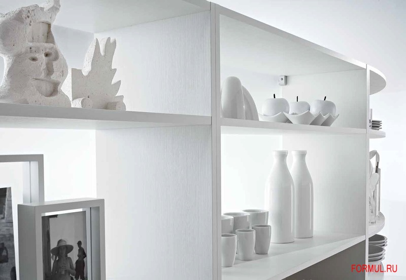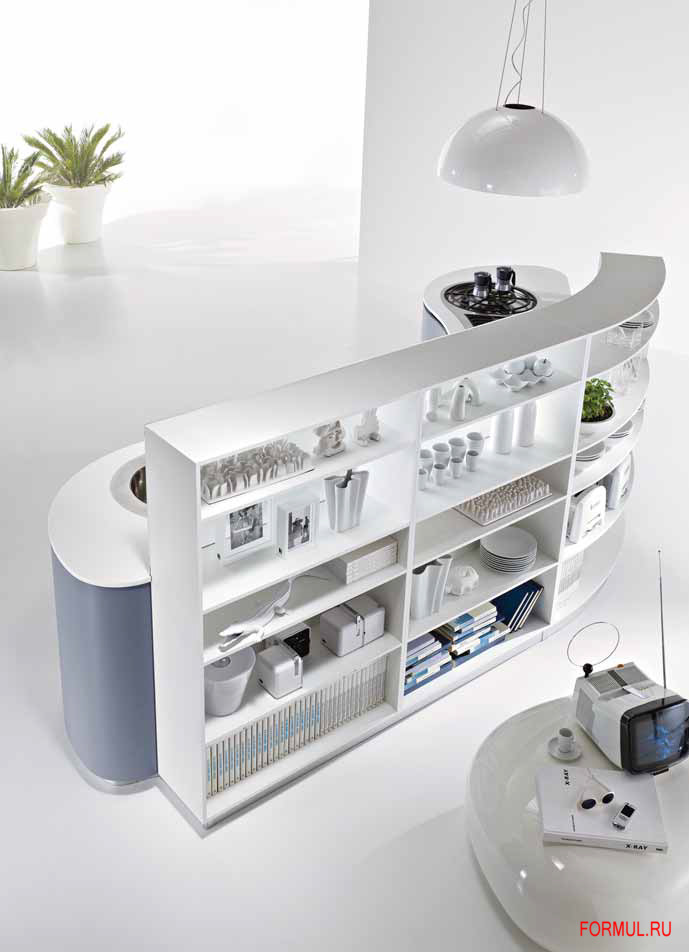 Книжный шкаф “Вита” соединяет изгибы композиции, защищая и зонируя помещение.