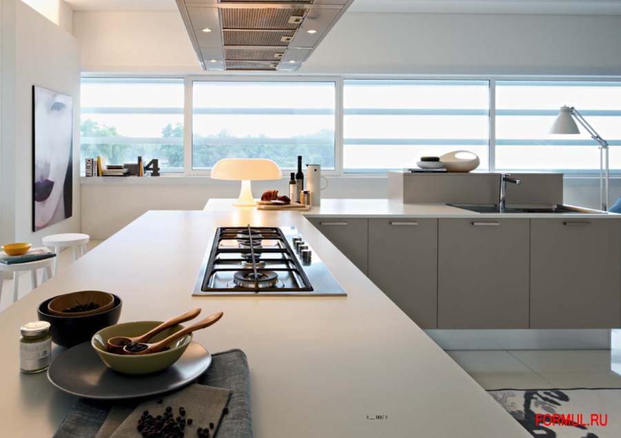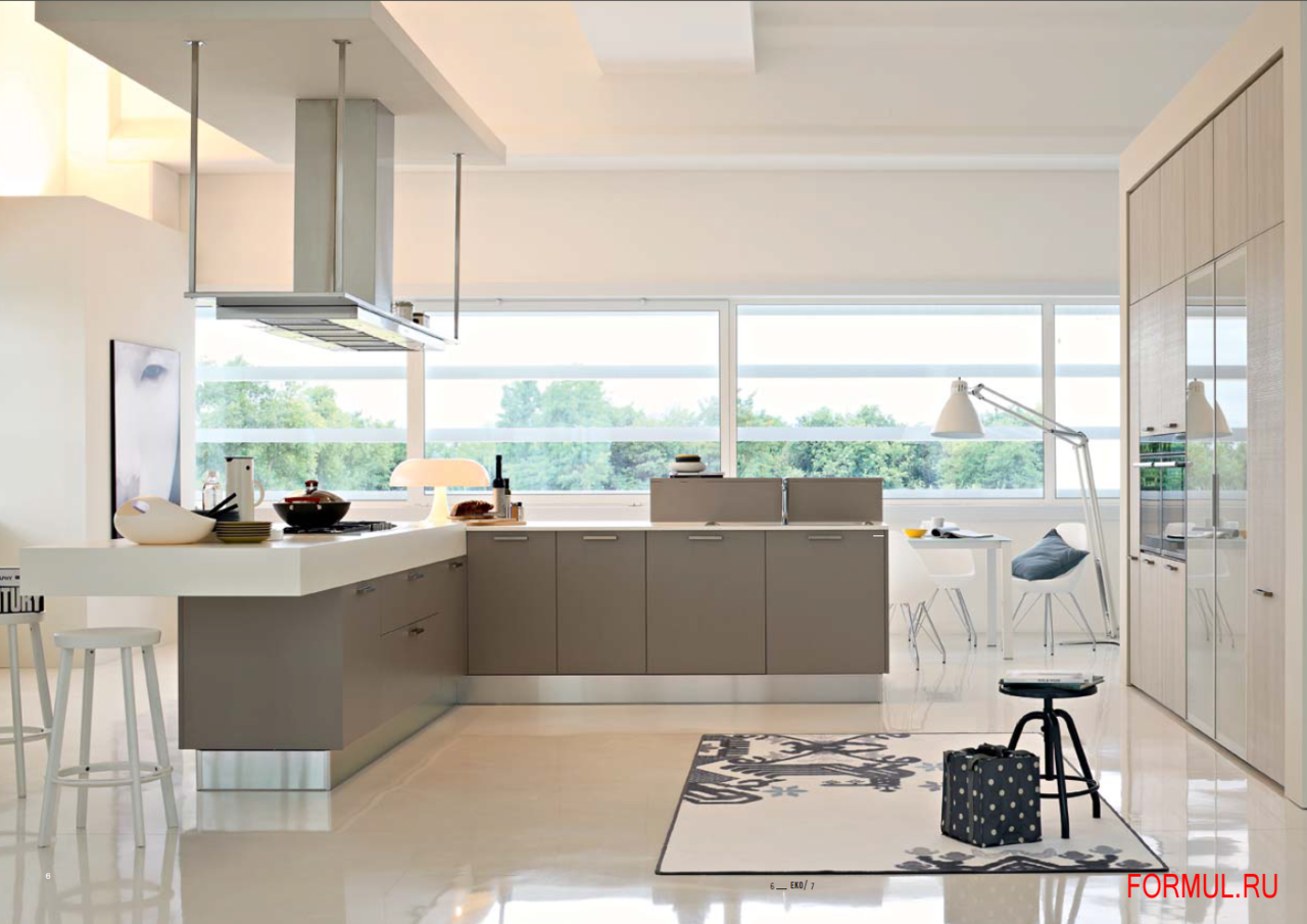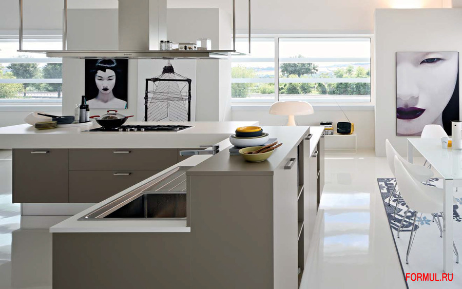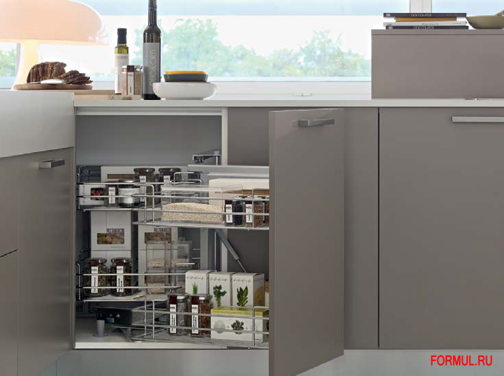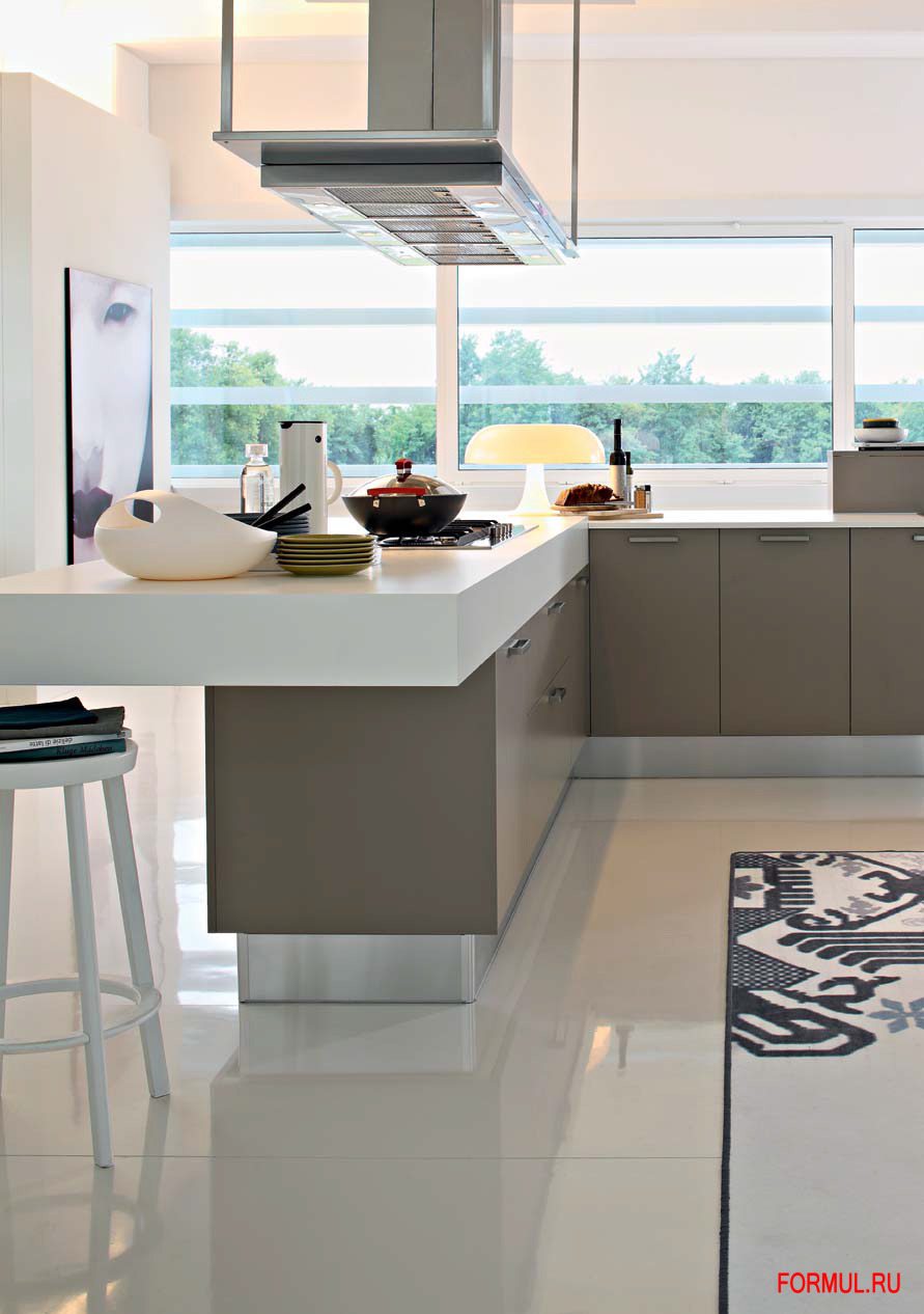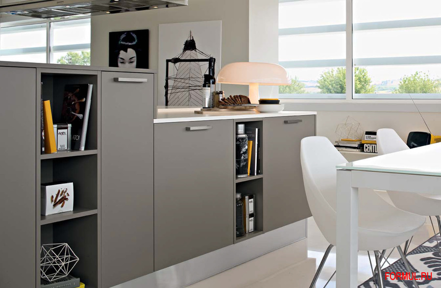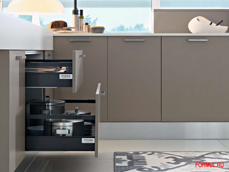 • Дверцы нижних секций острова реализованы в матовой отделке цвета