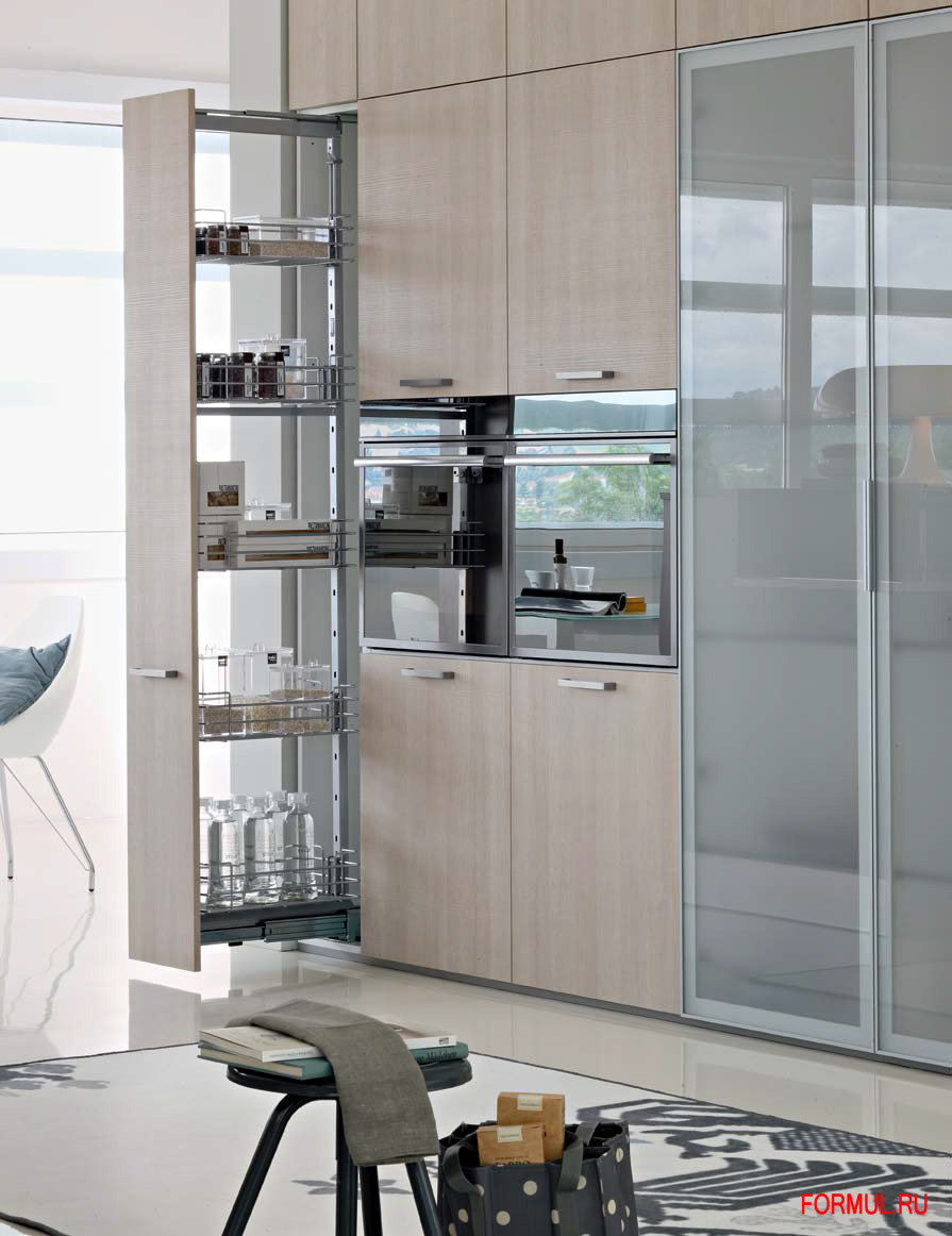 Кухня подает пример рационального использования пространства, благодаря чему условия для работы здесь становятся чрезвычайно комфортными. Никаких лишних передвижений, все идеально организовано, все требования безопасности учтены. Мебель эстетична, функциональна и весьма вместительна. Пространство кухни преображается и раздвигается благодаря интуиции и хорошему вкусу создателей гарнитура Eko.