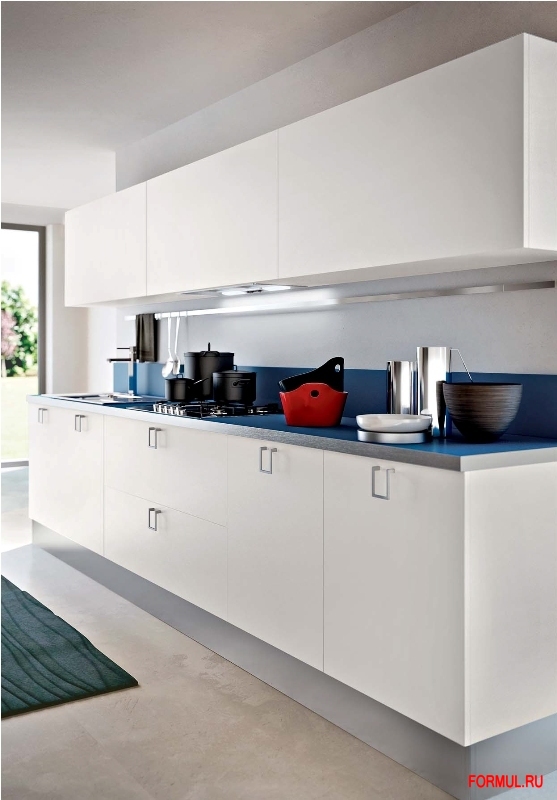 Кухня доступна в различных типах отделки и цветовых комбинациях. Столешницы в белом