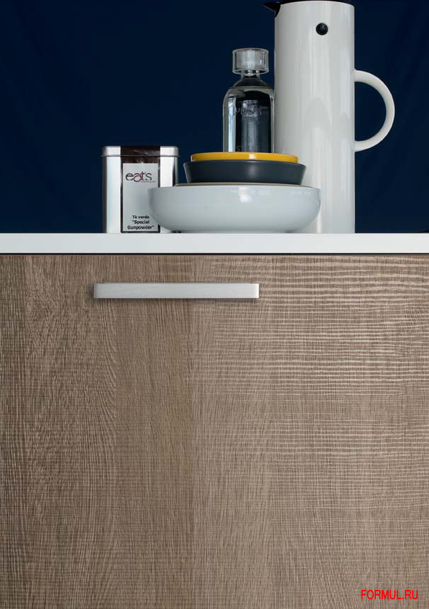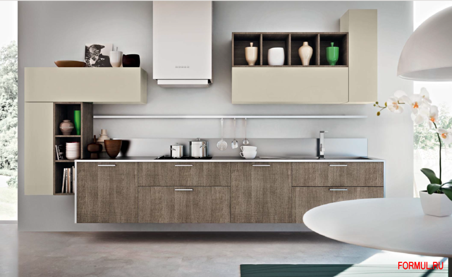 • Дверцы для навесных шкафов и колонн реализованы в матовой отделке из ламината, цвета «canapa».