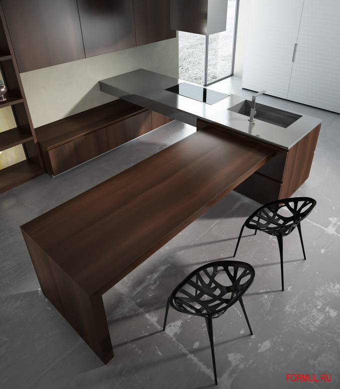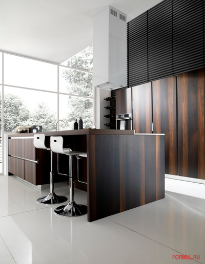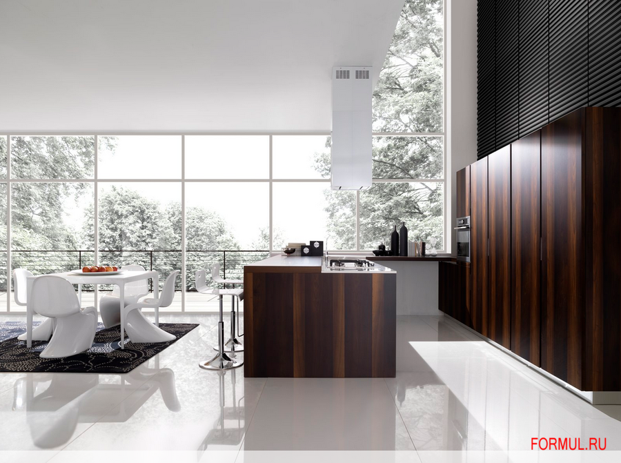 Royale является композиционным ответом на новые динамики повседневной жизни: современный темп и новые постоянно растущие потребности, находящиеся в непрестанной эволюции, переписывают правила жизненного пространства. Royale – это настоящая формула жизни, созданная для того, чтобы иметь возможность готовить и при этом передвигаться с удобством. Дверка значительной толщины 28 мм представлена серией вариантов, трансформирующих модель в систему. Гамма проходит от ламинатов в отделке дерева до лакированных матовых и глянцевых в щёточной обработке фасадов, и завершается дверками из стекла и из наиболее ценных видов древесины, таких, как красное дерево и термообработанный дуб.