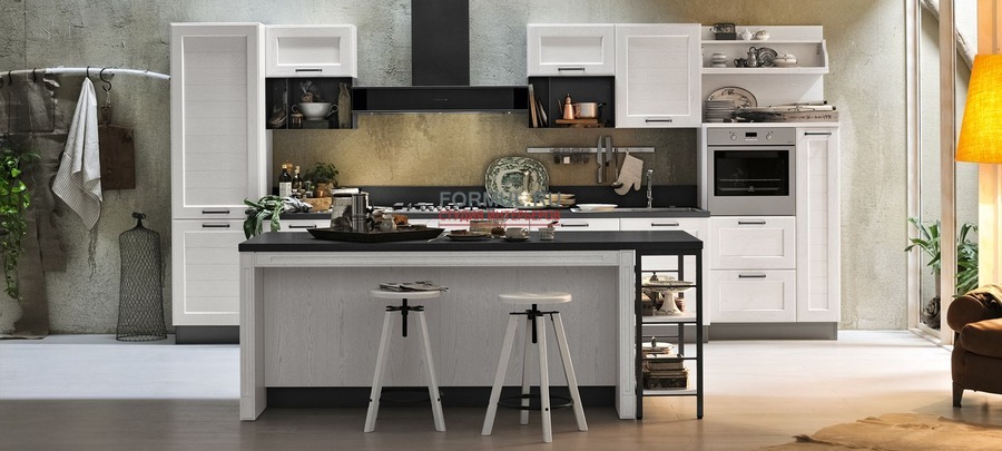 Благодаря различным аксессуарам, таким как открытые элементы из металла или новые металлические стеллажи, позволяющим создавать самые разнообразные комбинации со столами, стульями и табуретами марки Stosa, эта модель кухни может иметь более классический или современный вид для удовлетворения вкусов тех, кому нравится смотреть в настоящее, не забывая при этом прошлого.