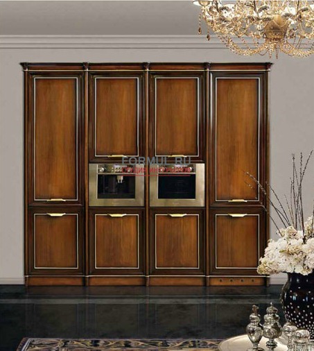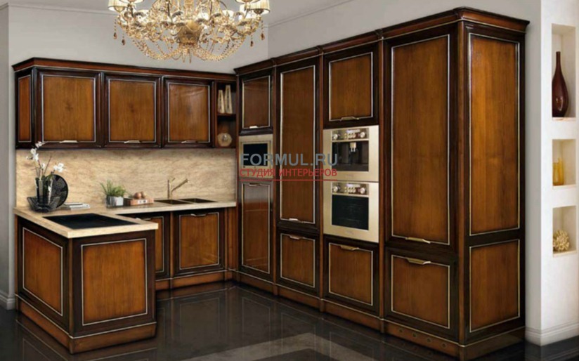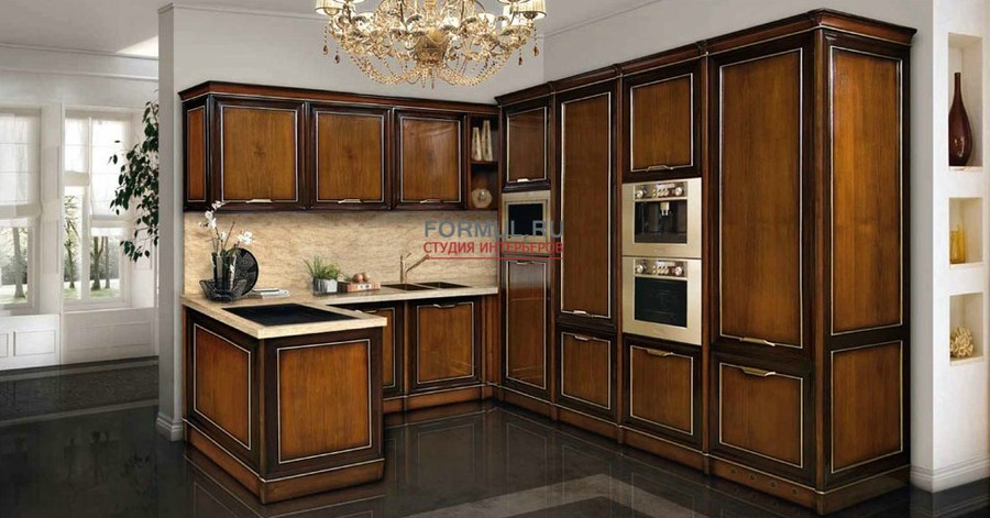 Интересным вариантом классической кухни можно назвать коллекцию Matilde от итальянской фабрики Tessarolo. Главная особенность модели — минимальное количество деталей в дизайне и упор на изящные фасады. Основным материалом для коллекции кухни Matilde является массив дорогостоящей древесины, а также натуральный камень и металлические элементы.