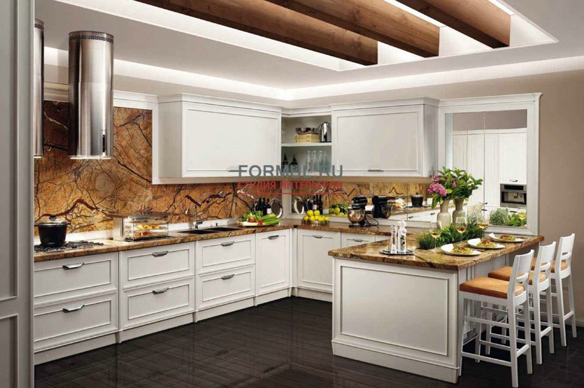 Интересным вариантом классической кухни можно назвать коллекцию Matilde от итальянской фабрики Tessarolo. Главная особенность модели — минимальное количество деталей в дизайне и упор на изящные фасады. Основным материалом для коллекции кухни Matilde является массив дорогостоящей древесины, а также натуральный камень и металлические элементы.