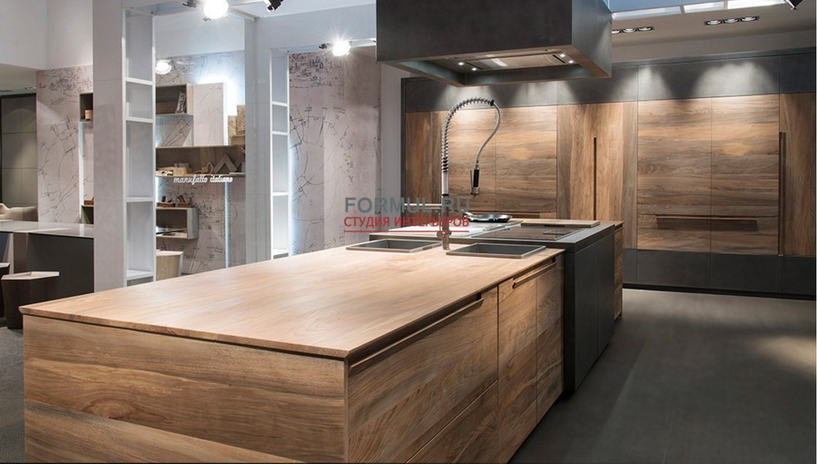 Essence — новейшая коллекция 2016 года от Toncelli, почти целиком (включая рабочую поверхность) изготовлена из ископаемого бука с отделкой из титановой стали. В выбранных материалах соединились история и инновации: бук погружает нас в прошлое, но для создания из него функциональной мебели, соответствующей современным стандартам, необходимы новейшие технологии обработки и титановая сталь.
