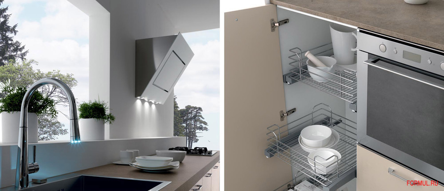 Кухонная мебель Италии EASY EGO фабрики TREO CUCINE имеет модульную систему, что помогает создать отличную меблировку, как на просторном кухонном пространстве, так и на небольшом.
