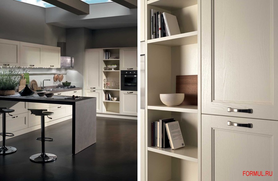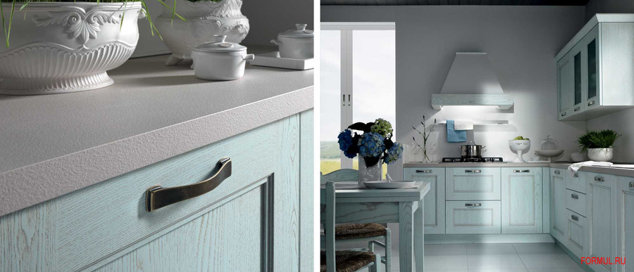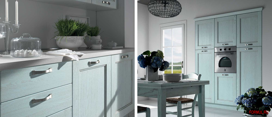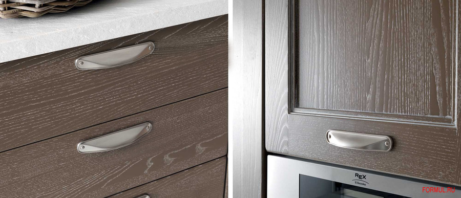 В мебели преобладают резные элементы, в тон которым подобрана оригинальная фурнитура, предлагающаяся в нескольких вариантах. Благодаря уникальной отделке, некоторые модели имеют естественный рисунок натурального дерева. Коллекция мебели для кухни TULAY фабрики TREO CUCINE превратит кухонное пространство в единую гармонию функциональности и классической красоты.