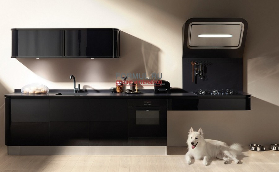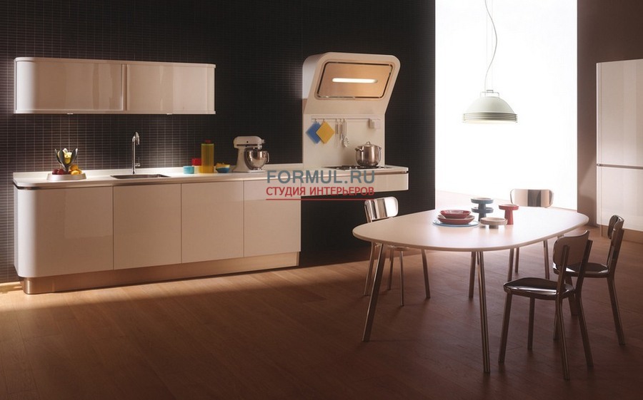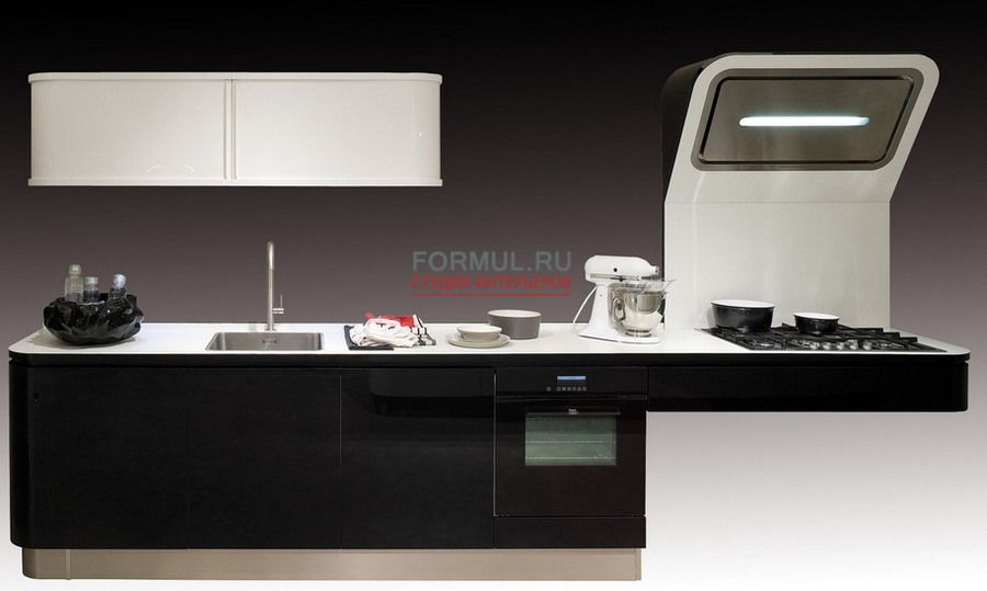 Стильная и яркая кухня сочетает сразу три ультрасовременных оттенка, формирующих уникальное произведение мебельного искусства. Она имеет неповторимую форму и отличается от других моделей несколько футуристическим дизайном, в котором функциональность вышла на поверхность и стала главной чертой.