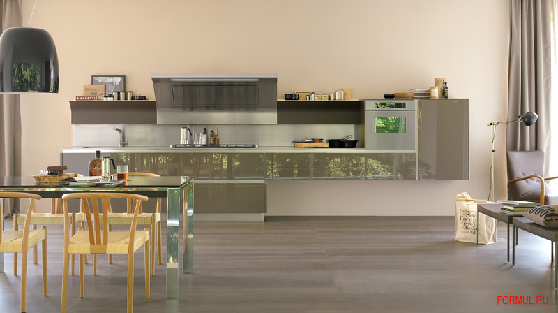 В данной модели использованы натуральные материалы, стекло, матовый лак различных оттенков - все это поможет придать кухне стиль, о котором вы мечтали.