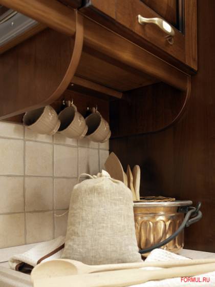 Удивительная по шарму и обаянию кухня в деревенском стиле. В конструкции и материалах изготовления соблюдены основные традиции классики итальянского мебельного производства: натуральность и неброская природная красота. Древесные узоры на резных фасадах, оригинальные ножки, вставки из качественного стекла и стилизованная фурнитура – все это дает теплый и домашний образ кухни Verdiana. Наряду с этим гарнитур функционален и имеет современное внутреннее оснащение.
