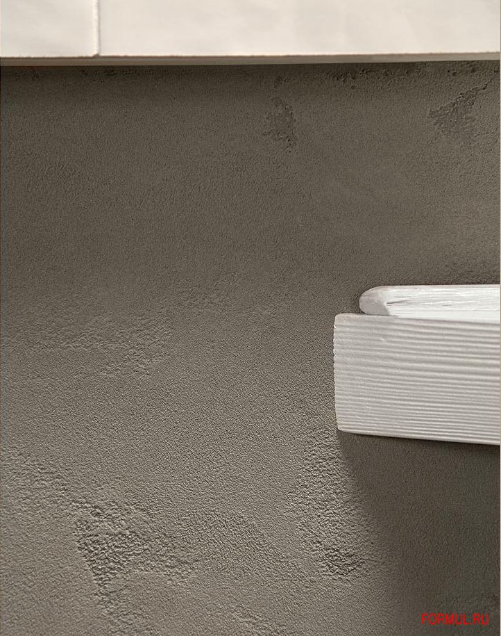 Стены кухни в отделке из серого цемента, с белой керамической столешницей Epoque.