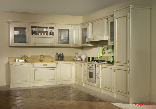 Классическая кухня Кремового цвета, выполненная в итальянском стиле от производителя Zilio.