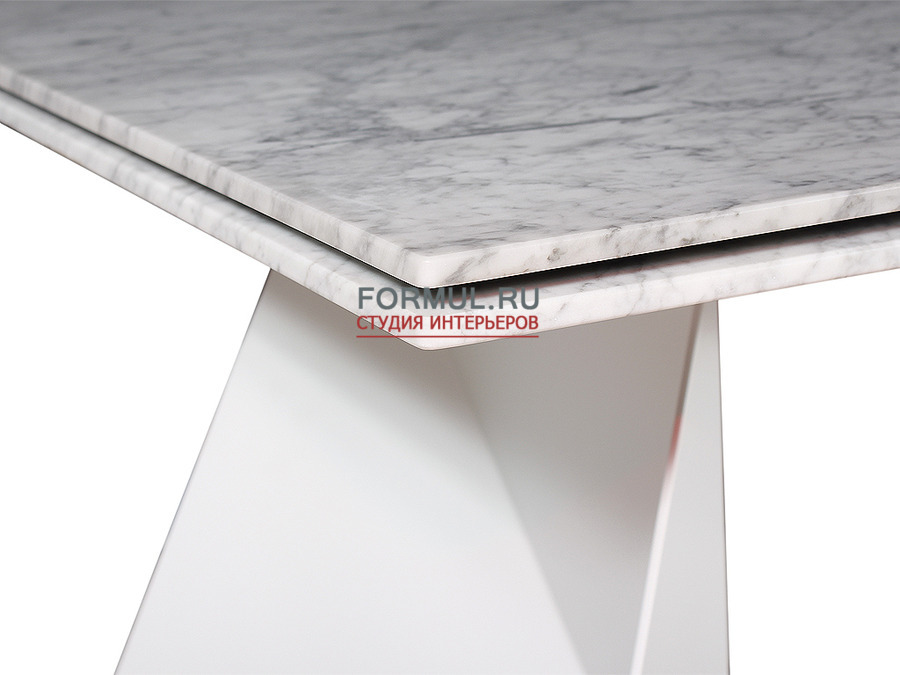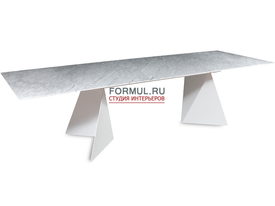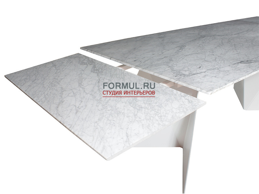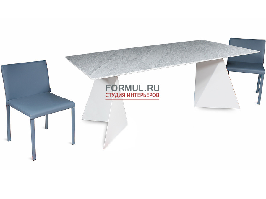 Опcисание: сенсация Миланской выставки 2015 года! Огромное полотно невероятной красоты бело-серого мрамора CARRARA поддерживается двумя металлическими ногами подчеркнуто геометрического, призматического дизайна. Дизайнеры DOMITALIA не скрывают, что создавая эту модель, они вдохновлялись чертежами знаменитого греческого математика Евклида.Стол оснащен высокотехнологичным поворотным механизмом автоматического синхронного выдвижения двух мраморных вставок. Металлические стулья, обтянутые натуральной кожей высочайшего качества и очень модного сегодня серо-голубого цвета, образуют с этим столом замечательный законченный ансамбль.