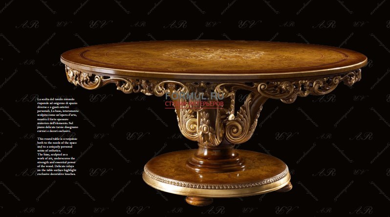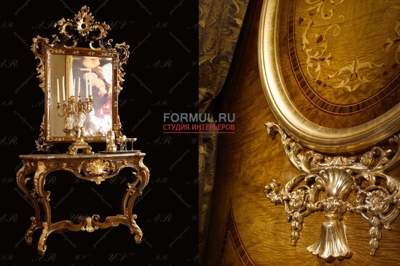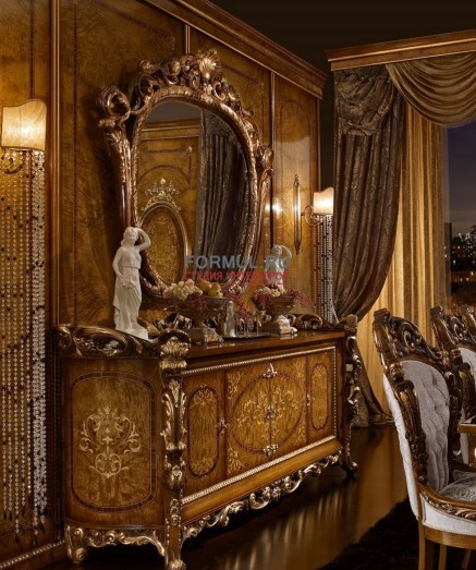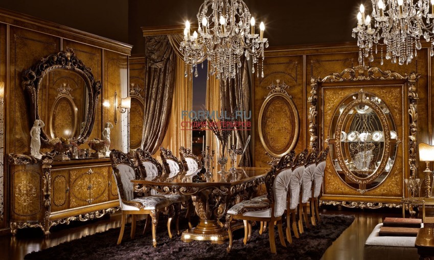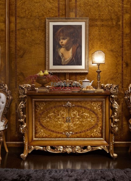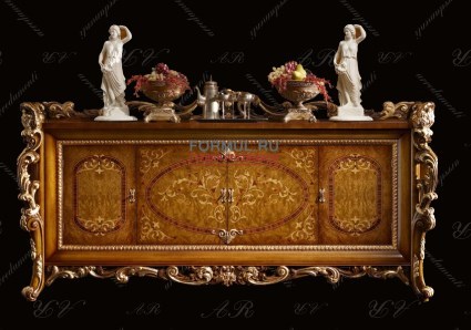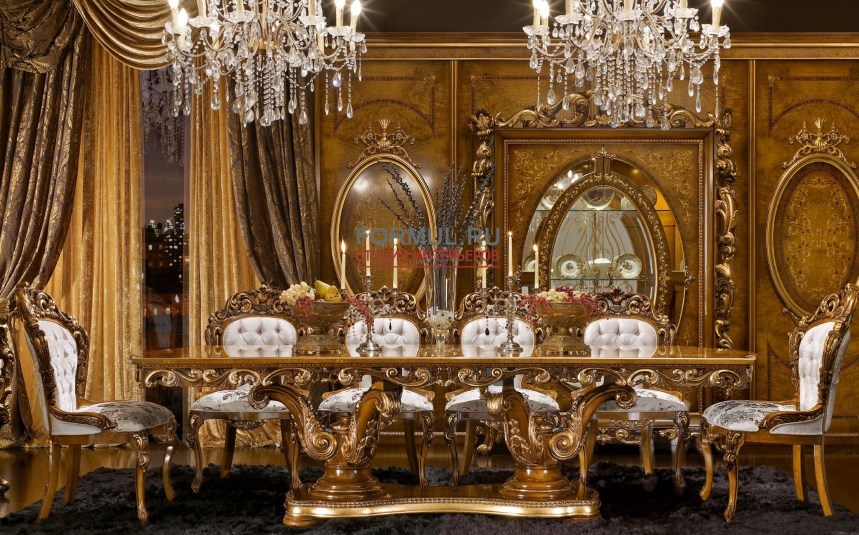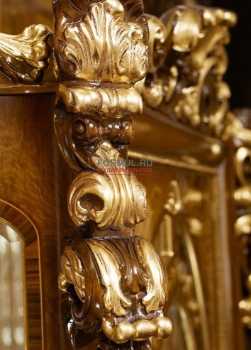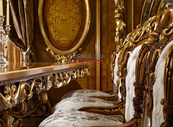 В дизайне мебели воплотились замечательные традиции европейской классической мебели. Достоинство и шарм натурального дерева дополняют плавные формы и золоченный резной декор мебели.