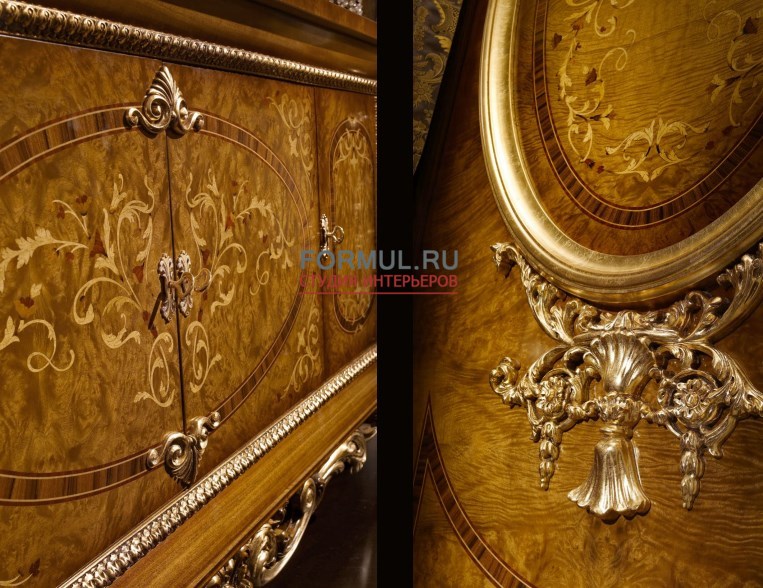 Материал – массив, шпон, МДФ, сусальное золото, текстиль.