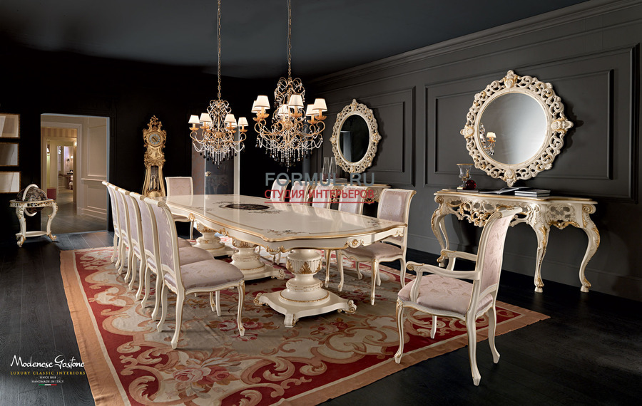 Столовая группа Villa Venezia 6 из Италии фабрики Modenese Gastone . Все интересующие вас вопросы касательно приобретения столовой группы Villa Venezia 6 вы можете задать нашим дизайнерам-консультантам по телефону или заполнив форму запроса дополнительной информации, кликнув по кнопке расположенной в нижней части страницы.